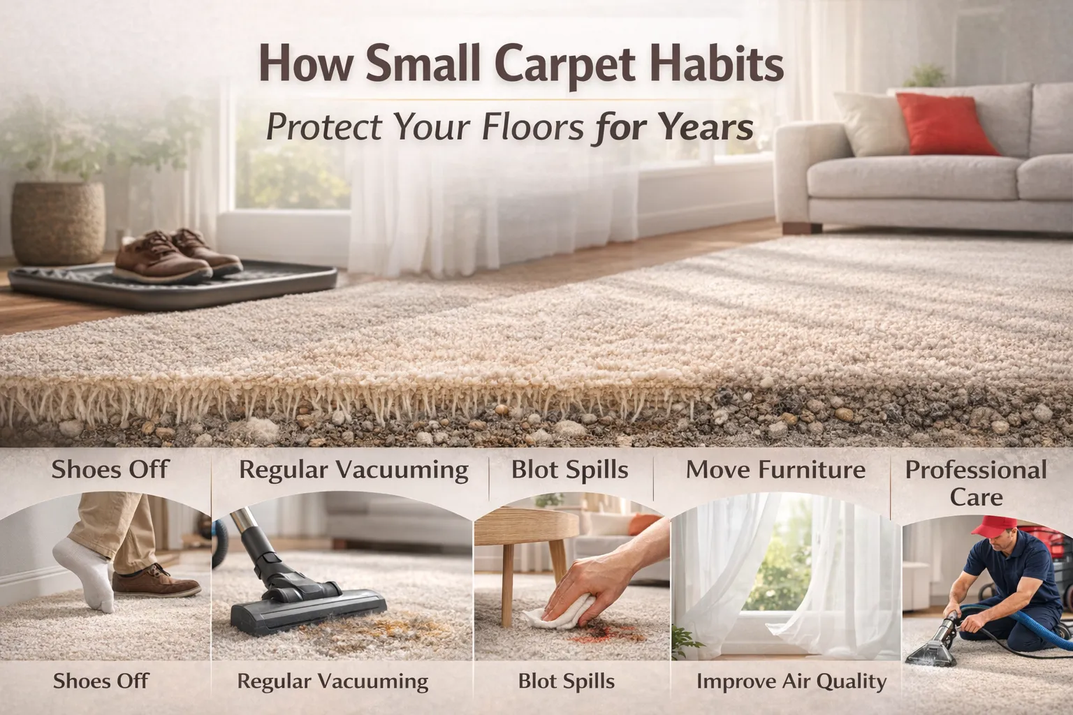 Many homeowners think carpets wear out simply because of age. In reality, most carpet damage happens slowly — through small, everyday habits we barely notice. The good news? Those same small habits, when done right, can protect your carpets for years and keep them looking, feeling, and smelling better for longer. Let’s take a closer […]